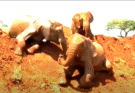 Arruba, who is always up for a wallow with friends, dives into the fun from stage right