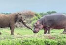 An Extraordinary Standoff & Approach Between a Hippo and the Elephants! Read More